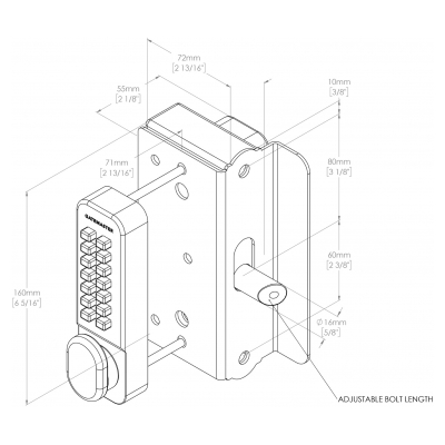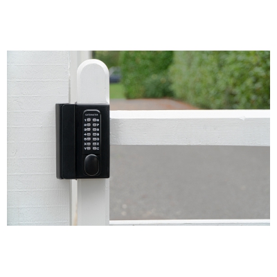 - Auto-latching – close the gate and the latchbolt latches into the gate frame. To open the gate – enter the code and turn the handle