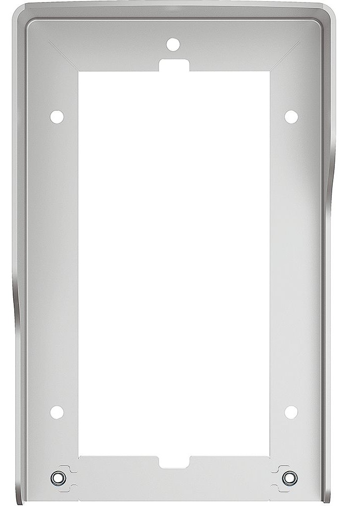 The rain shield is used to protect a two module unit door entry panel from adverse weather conditions, therefore increasing its lifespan.