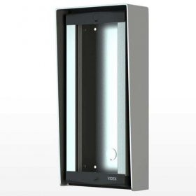 The two module frame with combined rain shield is used in conjunction with the 8000 series of modular panels by Videx.